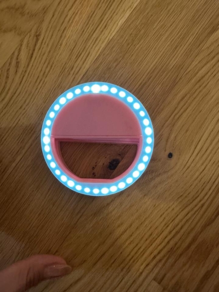 Ich verkaufe ein kompaktes Selfie-Licht in Pink – ideal für Fotos, Videos oder Make-up.