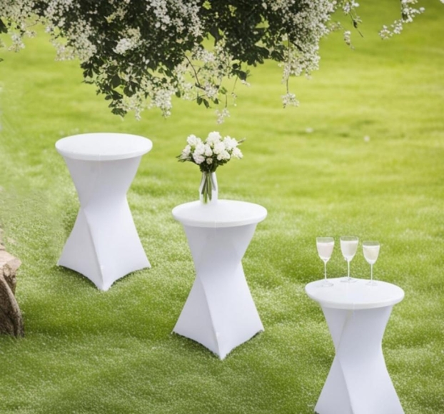 Wir verleihen stehtische mit passender weißer husse für Ihren Geburtstag, ihr Hochzeit oder sonstiges Event.