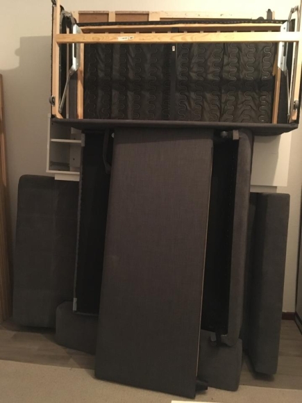 Ich gebe eine schon zusammengebaute Couch ab. Auf dem ersten Bild sind vereinzelt Dinge zu sehen die nicht zur Abgabe gedacht sind (weißer TV Schrank). Ein Funktionierender Fernseher und Sandwichmaker sind inklusive. Die Couch befindet sich im 2. Stock und kann gut abgeholt werden. Abholung gerne heute Nachmittag!