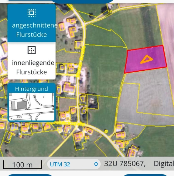 Verkaufe eine derzeit verpachtete landwirtschaftliche Fläche in Roth (83417 Kirchanschöring) Flurstück 1424 im Bild lila markiert. Fläche 5640 m2