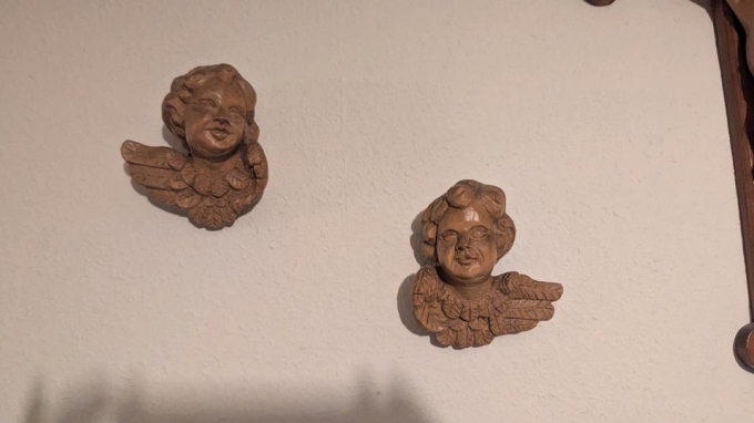 Engelköpfe, Putten, geschnitzte Holz Skulpturen, Antik, Stube