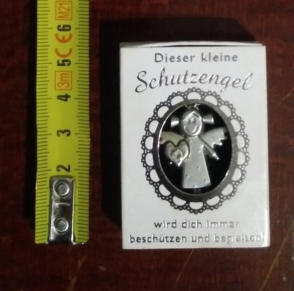 Verschenke Schutzengel-Anhänger aus Metall. Neu und ungetragen. Verpackung hat Gebrauchsspuren.