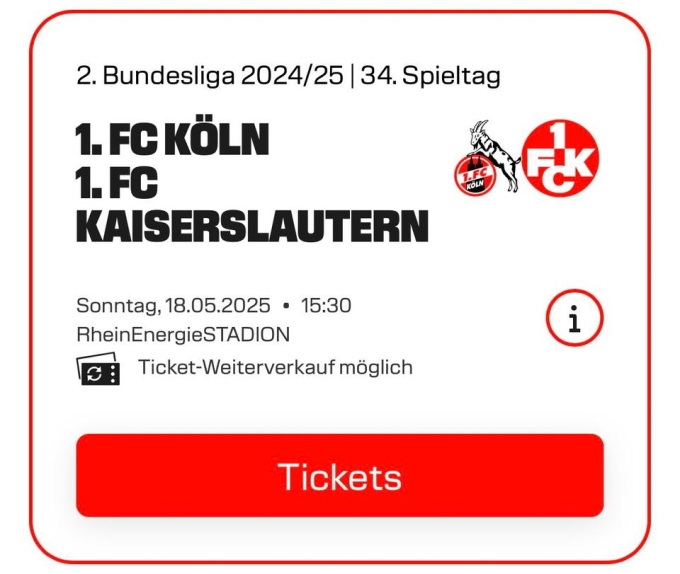 Ich suche unbedingt 2 Tickets für das Heimspiel Köln gegen Kaiserslautern.