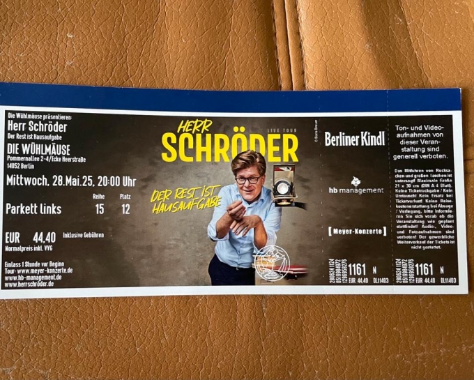1 Karte HERR SCHRÖDER Berlin 28.05 anzubieten 40€