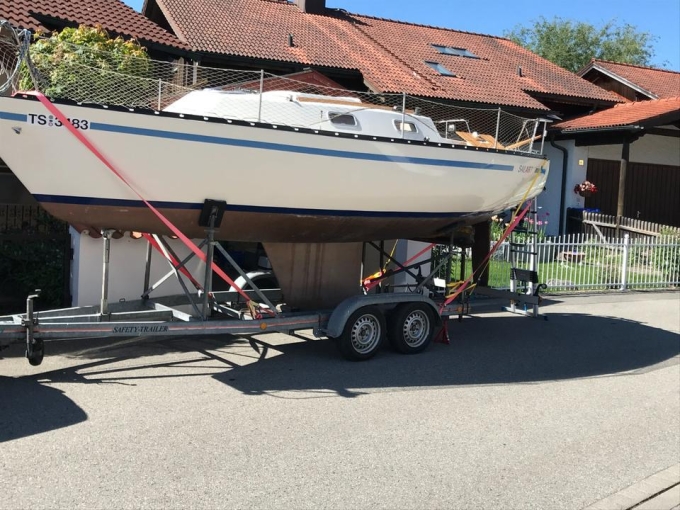 Zum Verkauf steht ein gut gepflegtes Segelboot der Marke Sailart Konrad 760 aus dem Jahr 1993. Das Boot hat eine Länge von 7,64 m und eine Breite von 2,55 m. Mit einem Verdrängungsgewicht von 2,1 Tonnen und einer Zuladung von 600 kg bietet es ausreichend Platz für bis zu 6 Personen. Anstriche wurden vor 2 Jahren erneuert. Das Boot wurde immer in einem trockenen Lager eingestellt.