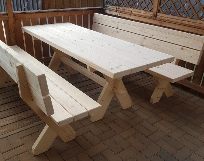 Sitzgruppe Fichte: Tisch 2,10m X 0,78m X 0,75m Bank ist 0,40m Tief