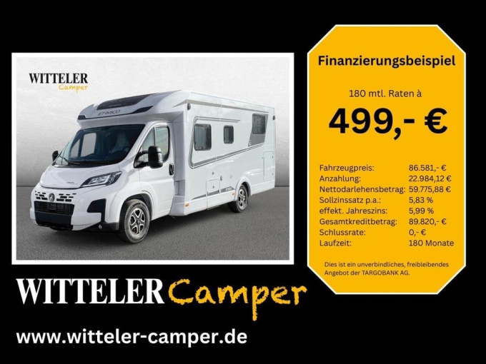 - Complete Selection (Komfort Paket, Design Paket type X, Multimedia Paket Compact, Rahmenfenster, Fenster in T-Haube, Design Applikation Heck, Abwassertank isoliert, Vorbereitung Solaranlage, Vorbereitung Dachklimaanlage, Vorbereitungen für TV Kabel 12V und TV Halterung, Vorbereitung für Rückfahrkamera, Wohnwelt Emilia)