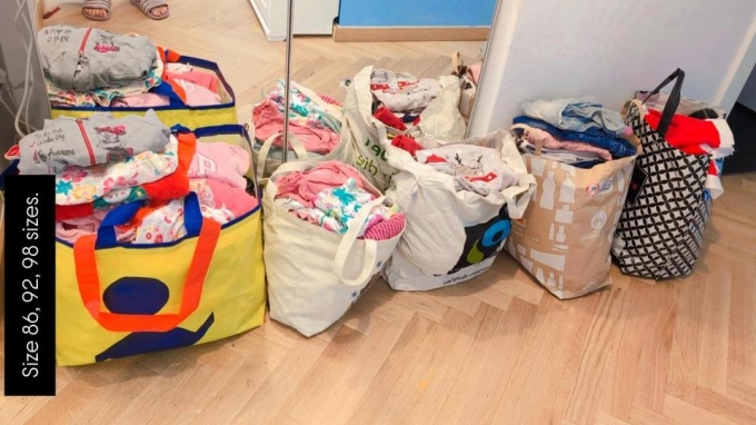 Kleidung für Kleinkinder in den Größen 86, 92, 98 (100-120 Stück). Einige sind nur ein Mal benutzt oder unbenutzt. Alle wurden neu für unser Kind gekauft.
