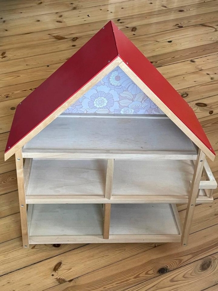 Schönes Puppenhaus aus Holz mit Vintage-Tapete