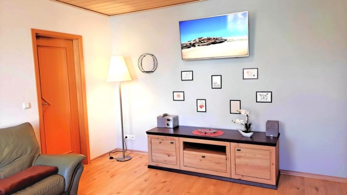 Doppelbett (auch getrennt aufstellbar), Schreibtisch, LCD TV, Bügelbrett, Waschmaschine, EBK mit Mikrowelle und Induktionsherd mit Backofen, Radio und Internet über W-LAN 250 M/Bits