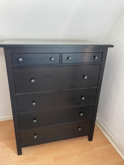 Ich verkaufe eine Ikea Hemnes Kommode in schwarzbraun mit 6 Schubladen.