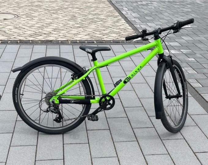 Leichtes 24 Zoll MTB in Größe L mit 8 Gängen, grün, ab ca.7 Jahren, mit geländegängigen Reifen.