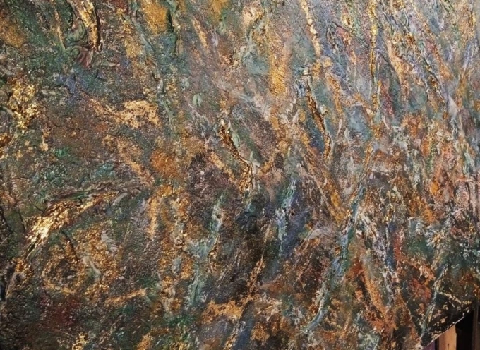 So nun ist es fertig Stuck Feinspachtel Relief mit Acryl, und Balattgold auf Leinwand.