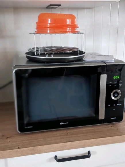 mit vielen Funktionen, wie z.B. Pizza-, Grill-, Back- und Auftaufunktion. Erhitzt super schnell. Der Gewichtssensor ermittelt selbstständig das Gewicht und passt automatisch die Garzeit an.