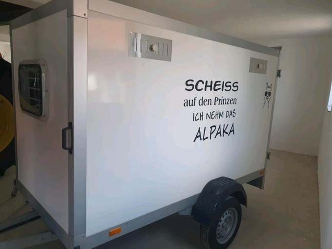 Der Anhänger wurde im Juni 2021 von uns neu gekauft und als Tiertransporter genutzt. Es wurden 4 Stück Entlüftungsschieber aus Alu sowie ein Ausstellfenster mit Schutzgitter eingebaut. Der Anhänger hat eine 100 km/h Zulassung, steht/stand immer in einem geschlossenen Gebäude und ist derzeit abgemeldet.