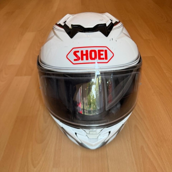 Verkaufe einen Shoei GT-Air III Motorradhelm in Größe L, inklusive integriertem Sena SRL3 Kommunikationssystem.