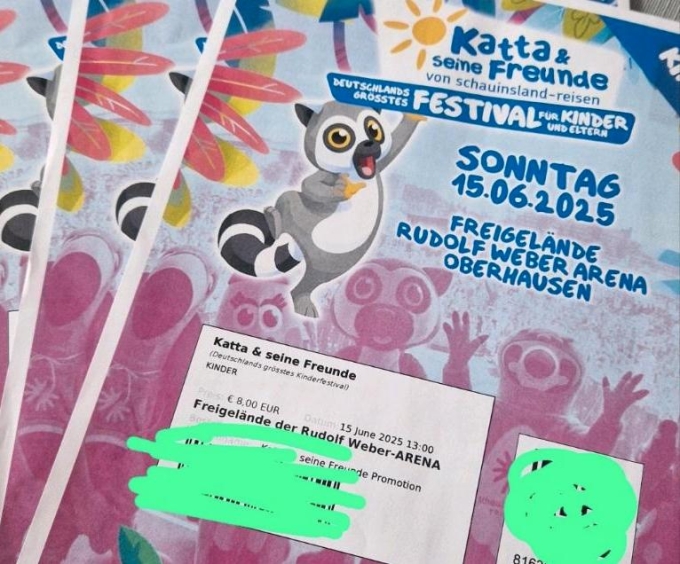3 Stück vorhanden . Können da leider an dem Datum nicht hin deswegen würde es mich freuen wenn jemand sich findet der mit seinen Kindern zu dem festivel gehen möchte.