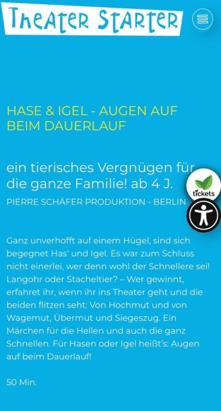 Ich muss leider Tickets für das Stück Hase&Igel - Augen auf beim Dauerlauf im DASDA Theater abgeben.