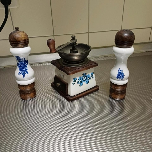 Schöne alte Kaffeemühle aus den siebziger Jahren mit zwei Gewürzmühlen