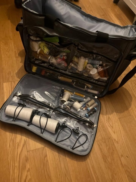 Viele Fächer für Zubehör, Pedal, Kabel, Garn etc.
