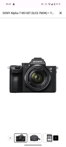 Verkaufe hier meine kaum benutzte SONY Alpha 7 M3 KIT (ILCE-7M3K) + Tasche Systemkamera mit Objektiv 28-70 mm, 7,6 cm Display Touchscreen, WLAN. Diese wurde im November 2024 gekauft und nur selten benutzt. Es wurden nicht mehr als 1500 Bilder aufgenommen. Kamera wurde nur mit Schutzfolie benutzt.