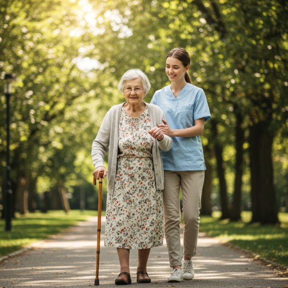 • Liebevolle Betreuung, z.B. Bewohner im Rollstuhl begleiten, gemeinsames Spazieren gehen, Gespräche