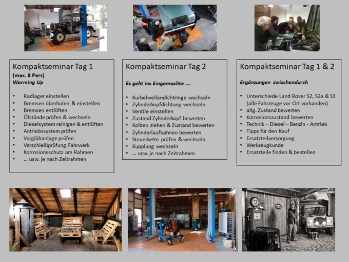 Sie bieten hier auf ein 2 tägiges Seminar zum Erlernen von Reparaturkenntnissen für Land Rover Serie Fahrzeuge