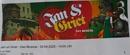 Ich biete 2 Tickets für " Jan un Griet das Musical " in Köln an.