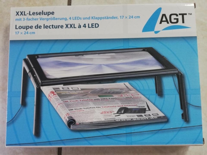 AGT Lupe: XXL-Leselupe mit 3-facher Vergrößerung, 4 LEDs und Klappständer.
