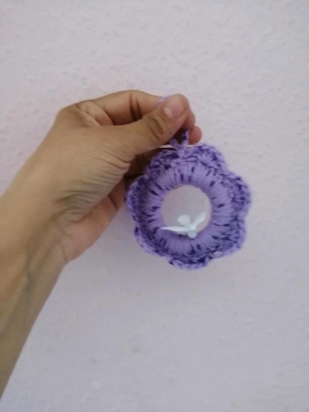 Kleiner gehärkelte Kranz mit Figuren in der Mitte es gibt verschiedene
