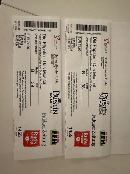 2x Karten für das Musical die Päpstin am 15.06.25 um 14Uhr in Fulda