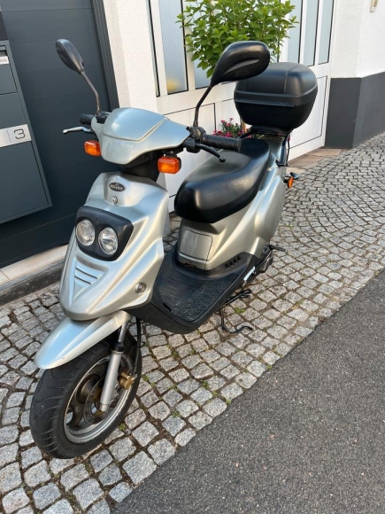 Ich biete einen Pegasus Sky 50 2Takt in der Farbe Grau mit Top Case an.