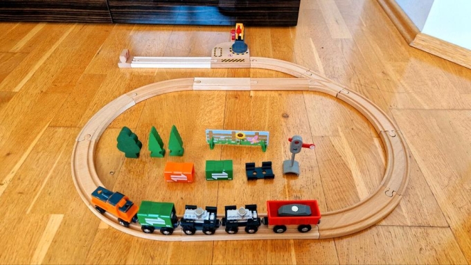 Ich biete zur Selbstabholung ein Brio Güterzug Set an. Die Lok fährt elektrisch. Es gibt viele Zubehörteile, ein Abstellgleis und einen Kran, um die Güter zu Be- und Entladen. Alles funktioniert einwandfrei. Wir geben es ab, weil die Kinder rausgewachsen sind.