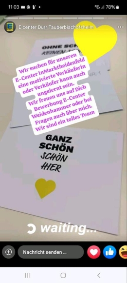 Wir suchen für unseren E-Center in Marktheidenfeld für Frischetheke Verkäufer oder Verkäufer muss nicht gelernt sein .Stunden egal.