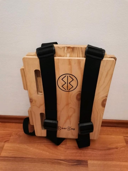 Unbenutzter BeerBag / Bierrucksack aus Holz. Alle Riemen und Schnallen tadellos. Bedienungsanleitung nicht dabei, gibt es aber online.