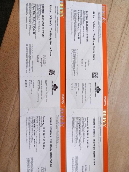 Hallo, hätte 4 Karten für die Rocky Horror Show am 29.6.25 um 18.00 Uhr im Globe / Coburg