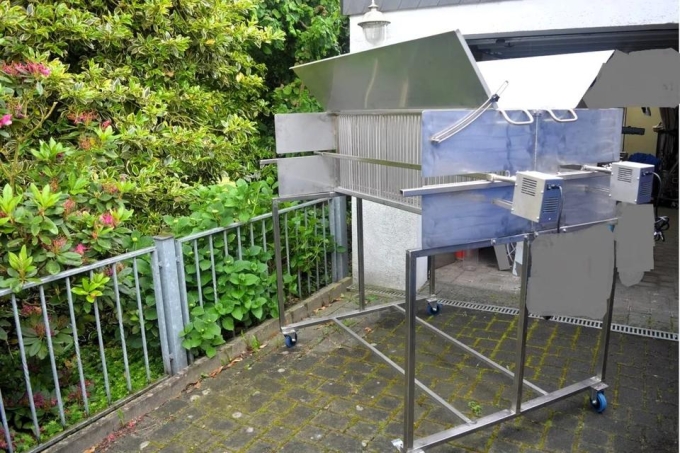 Es sind zwei Fettwanne dabei. Natürlich sind auch mit 2 Motoren bis 80 kg Grillgut pro Spies gesamt 160 kg (nach wünsch Motor kann stärke sein) und alle Zubehörteile inklusive. Mit 2 Spießstange aus 25 X 25 mm dicken Quadrat Rohr ist , Tiefe stufenlos verstellbar. Mit Dach und 50 x 60 Seitenwände, was ist natürlich sehr gute Schutz für Motor und Wärme. Der gesamte Grill ist leicht in Einzelteile zerlegbar und kann einfach mit zwei Griffe transportiert werden.