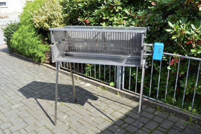 Es sind eine Fettwanne und eine Kohle- Asche wanne dabei. Natürlich sind auch mit Motor 230V bis 30 kg Grillgut (nach wünsch Motor kann stärke sein) und alle Zubehörteile inklusive. Der Spieß aus 21 mm dicken Rohr ist , Tiefe stufenlos verstellbar. Mit Dach und 300 x 450 Seitenwände, was ist natürlich sehr gute Schutz für Motor ,und Wärme. Der gesamte Grill ist leicht in Einzelteile zerlegbar und kann einfach mit zwei Griffe transportiert werden.