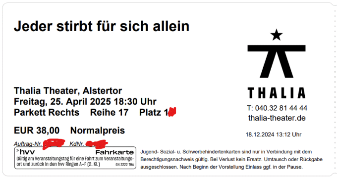 HEUTE 18:30 ! 2x Thalia Hamburg Jeder stirbt für sich allein