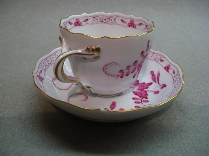 Dekor: “Indische Malerei“ in Purpur-Farbtönen, Goldrand, Goldpunkte
