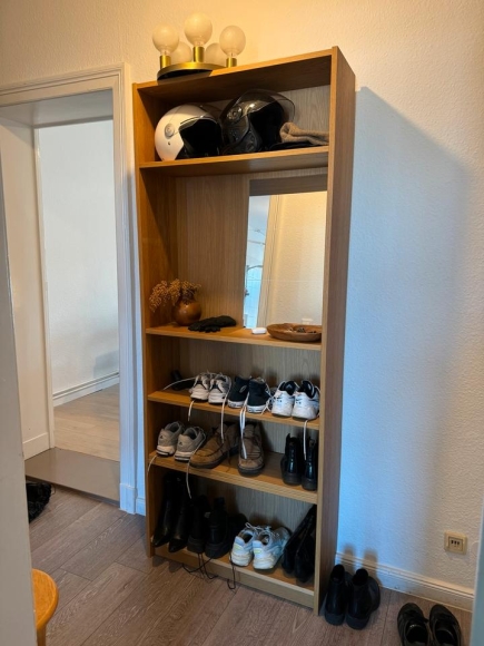 Ikea Regal (dort wo aktuell der Spiegel drin steht ist normalerweise eine weitere Regalebene. Diese ist noch vorhanden)