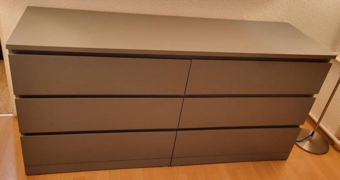 IKEA MALM Kommode mit 6 Schubladen, grau lasiert, 160x78 cm