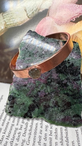 Kupfer Armreif mit einem echten Moldavit: Handarbeit aus Tschechien: