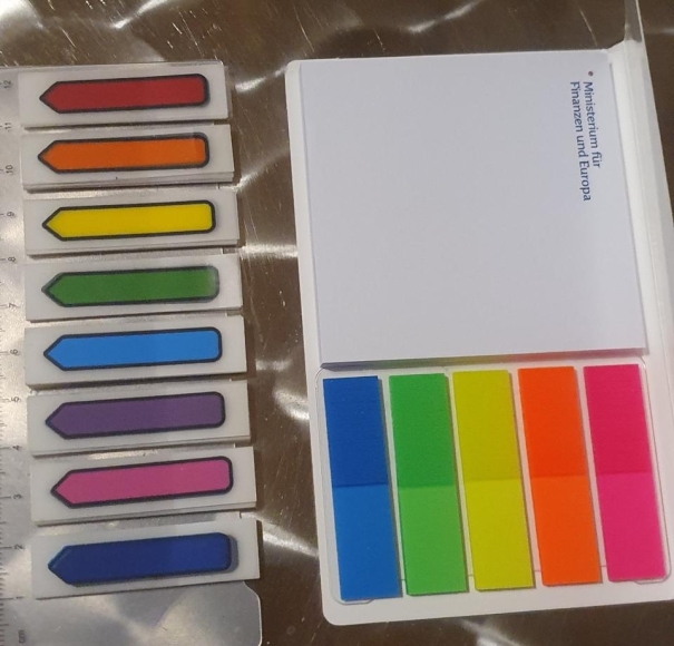 dazu Post Its in 5 Farben jeweils ca 20 Stück