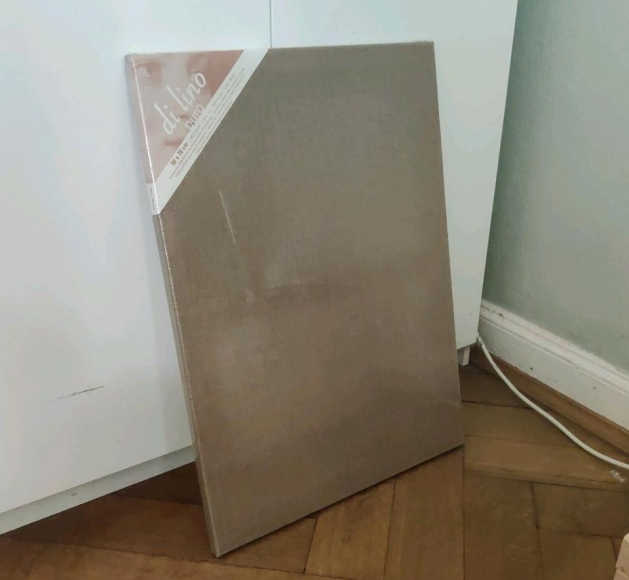 Bespannt mit naturfarbenem Leinen mit transparenter Grundierung. Aus dem Boesner Künstlerbedarf.