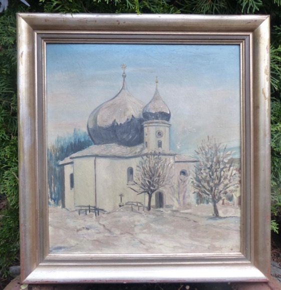 Dieses Ölbild (mit kleinen Beschädigungen stammt von dem Maler E. Buchner aus dem Jahre 1956.