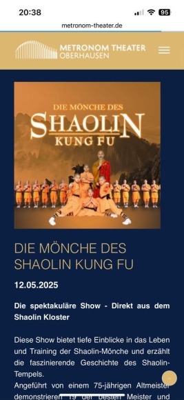 2 Karten für Shaolin Kung Fu Metronom Theater für den 12.05