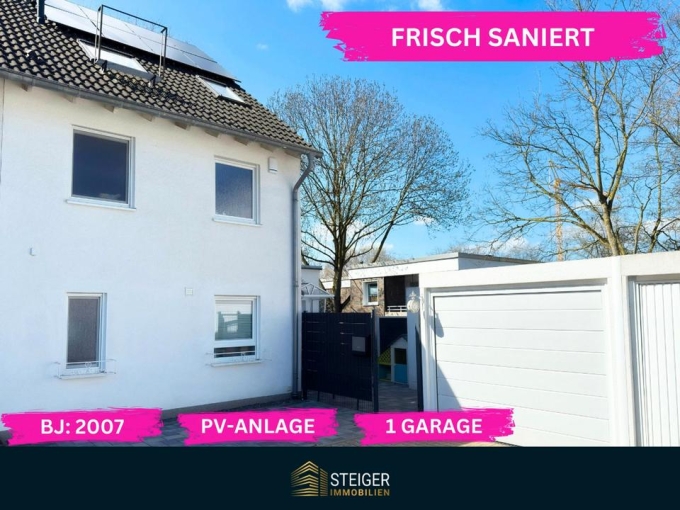 Dieses charmante Reihenendhaus am Ende einer gepflegten Wohnreihe vereint stilvolles Wohnen mit durchdachter Funktionalität – ideal für Familien, die großzügiges Wohnen mit nachhaltiger Technik und moderner Ausstattung verbinden möchten. Auf einem 301 m² großen Grundstück bietet die im Jahr 2007 errichtete Immobilie rund 128 m² Wohnfläche, verteilt auf 2,5 Etagen plus Spitzboden. Das Haus wurde 2019 umfassend modernisiert und präsentiert sich mit hochwertiger Ausstattung für moderne Familien und einem offenen, lichtdurchfluteten Grundriss.