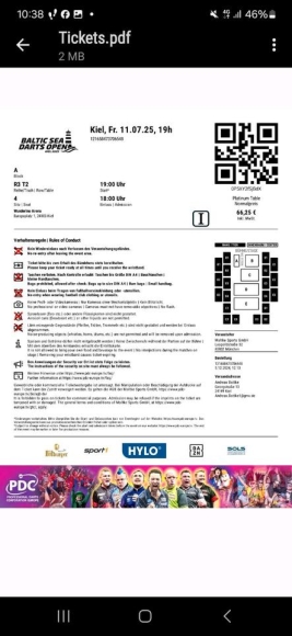 verkaufe drei Karten für die baltic Sea darts open. Plätze sind mit an diesem Tisch. es handelt sich nicht zwingend um exakt diesen sitzplatz. das Bild dient nur als Beispiel und um zu sehen wo der Tisch ist.