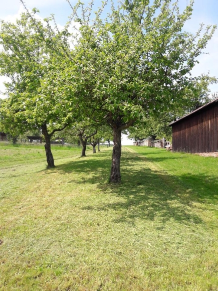 Auf dem 555m2 großen Grundstück befinden sich aktuell 6 Apfel- und 6 Zwetschgenbäume.